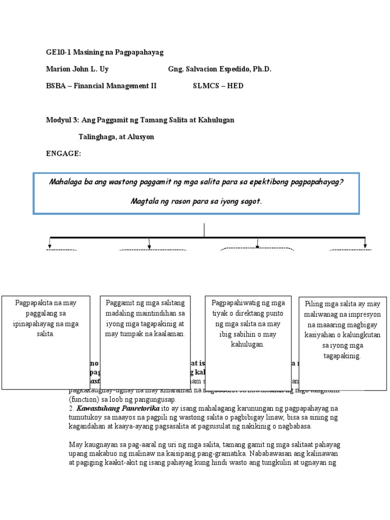 Module 3 Masining Na Pagpapahayag Kolehiyo Departmento Ng Filipino Fil 3a Masining Na Studocu