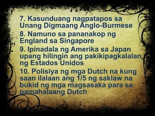 Ang Unang Yugto ng Kolonyalismo. Ang Pilipinas ay naging saksi sa ibat-ibang yugto ng kolonisasyon. Nangibabaw ang karapatan at interes kaysa sa kapakanan.