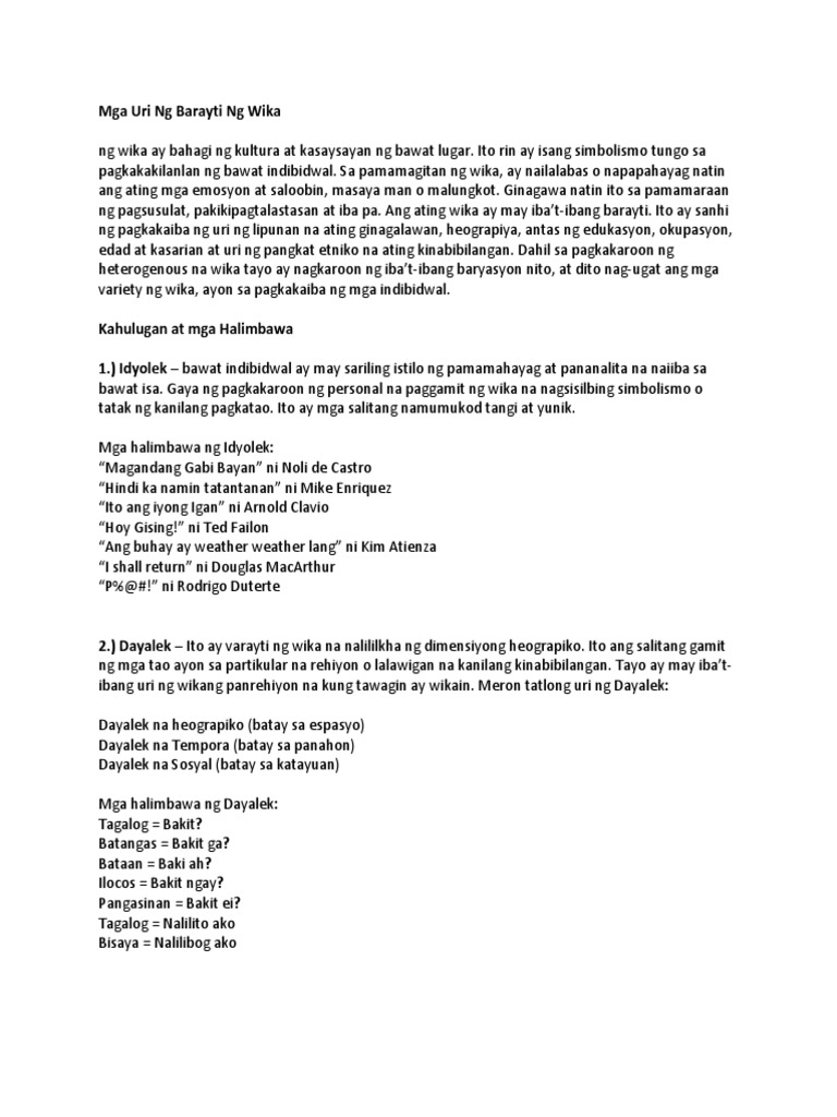 Mga Uri Ng Barayti Ng Wika Pdf