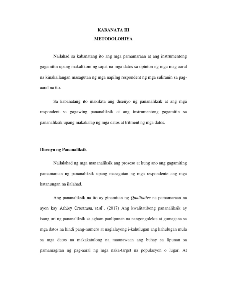 So this tool was designed for free download. KabanataIII PamamaraanngPananaliksik ParaanngPananaliksik. Kabanata II METODOLOHIYA AT PAMAMARAAN Ang kabanatang ito ay naglalaman ng mga detalye tungkol sa disenyo at pamamarang gagamitin sa pananaliksik.