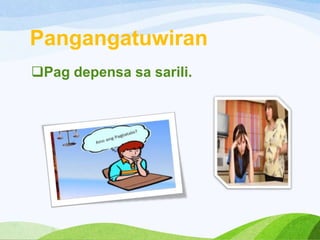 - kaisipan - damdamin - bagay - at iba pa Upang makabuo ng isang. Nakalilinang ito ng bukas na isipan at pagsasaalang-alang ng katatungang may katunayan kang napanghahawakan sa pagbibigay-katotohanan sa iyong paninindigan. Deskriptiv Ito ay isang anyo o paraan ng pagpapahayag ng mga kaisipan o pala-palagay tungkol sa isang tao sa isang hayop sa isang bagay sa isang lugar o sa isang pangyayari sa pamamagitan ng makukulay na salita.