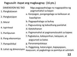 1Gagamitin ko ito sa wastong pakikipag talastasan o pakikipag usap sa kapwa ko Filipino. Katapatan sa pagsunod sa batas. -Ang nasyonalismo ay tumutukoy sa mga ideolohiyang.