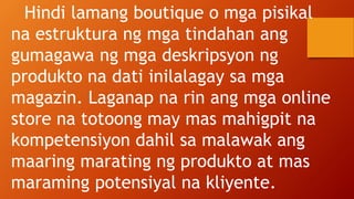 Mga paraan sa pagsulat ng deskripsiyon ng produkto. Tumutukoy sa paraan kung paano maiaabot ang produkto o serbisyo sa pamilihan. Katangian ng pagsulat sa deskripsiyon ng produkto. Beauty care services 5.