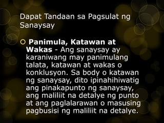 Pamantayan sa Pagsulat ng Reflektibong Sanaysay Kraytirya Katangian Iskor Lalim ng Repleksiyon Naiuugnay ang mga sariling karanasan batay sa pangyayari sa lipunan 15 Nilalaman Maayos na nailatag at napagsunod-sunod ang ideya 15 Paglalahad ng impormasyon Mahusay na nailahad ang. Tinagurian din siyang alamat ng sining sa pagkukuwento dahil sa mapagbiro at puno ng katatawanang estilo sa pagsulat. Malaman ang mga epekto ng pakikipagrelasyon sa pag-aaral.