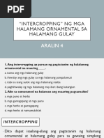 Paraan ng pagtatanim ng halamang zinnia. Pangalan ng Halamang Ornamental Uri ng Halamang Ornamental Lugar Kung Saan dapat itanim Paraan sa pagtatanim Pagaalaga SAN FRANCISCO HERB LUPAMAARAW SANGA ROSAS PALUMPONG LUPAMALAMIG MAARAW BUTO FIVE FINGER VINE PASOLUPA SANGA SAMPAGUITA PALUMPONG PASOKAHOY SANGA DAMA. DISH GARDEN Ito ay pinaliit na hardin sa paso o anumang sisidlan. Salain ito at gawing tsaa para sa pasyenteng may sakit.